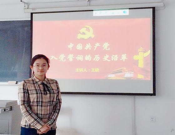 4月9日下午,教务处党支部党员王欣同志为支部全体党员干部带来了一堂题目为《中国共产党入党誓词的历史沿革》的微党课。
