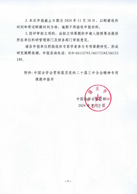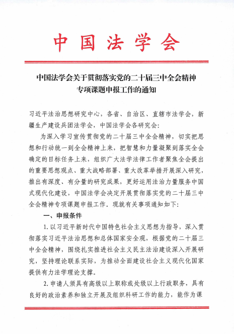 中国法学会关于贯彻落实党的二十届三中全会精神专项课题申报工作的通知